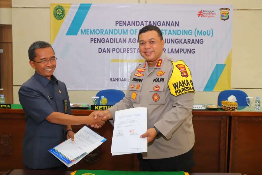 Perkuat Sinergitas, Polresta Bandar Lampung dan Pengadilan Agama Tanjung Karang Teken MoU