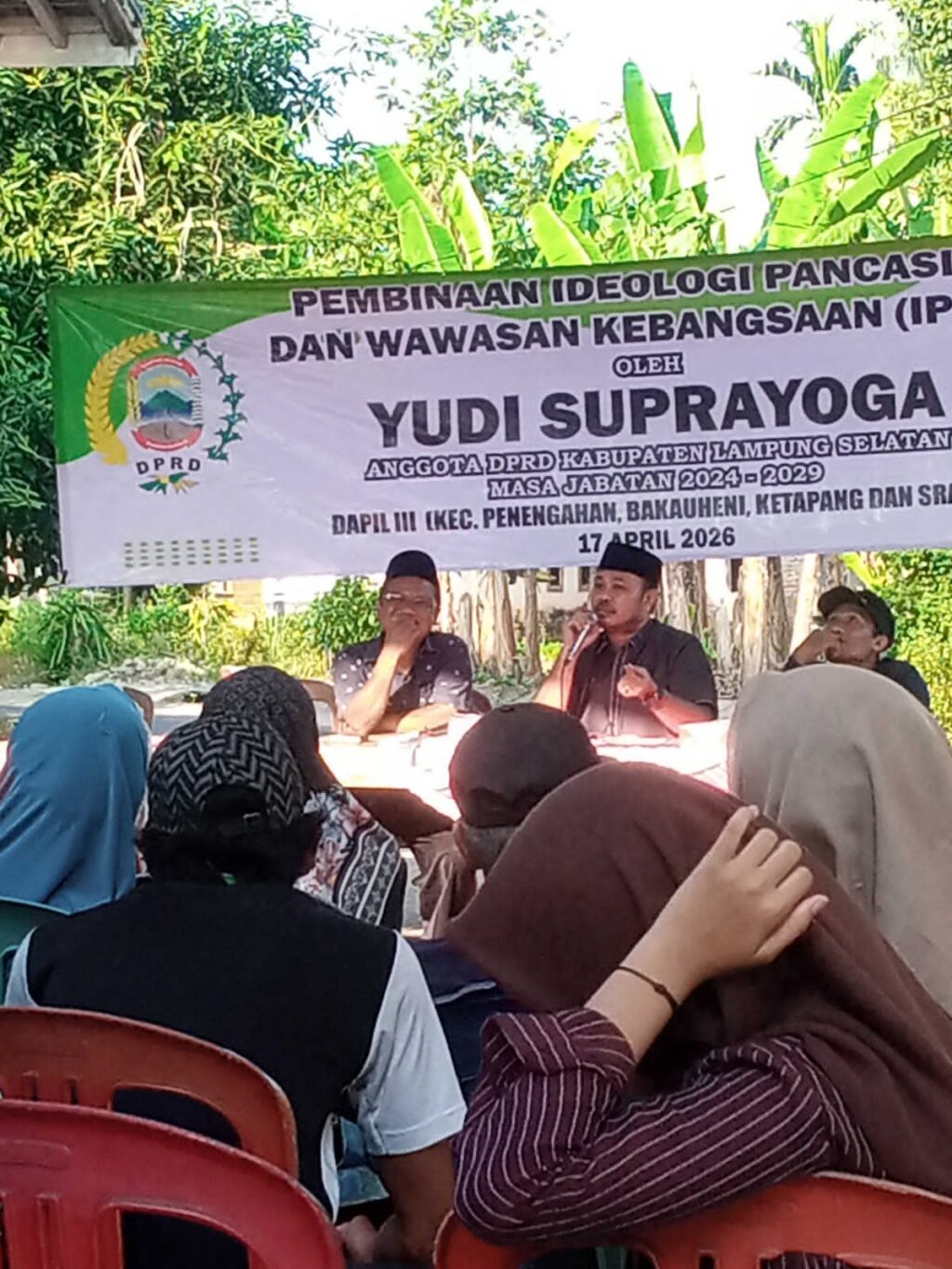 BANYUWULU.COM- Anggota DPRD Kabupaten Lampung Selatan, Yudi Suprayoga, melaksanakan kegiatan Pembinaan Ideologi Pancasila dan Wawasan Kebangsaan (IPWK) di Desa Ruguk, Kecamatan Ketapang, Jumat (17/4/2026).