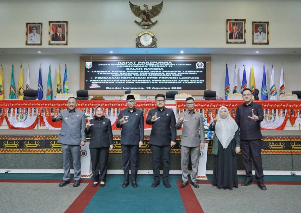 BANYUWULU.COM- Bandar Lampung — Gubernur Lampung, Rahmat Mirzani Djausal menghadiri Rapat Paripurna DPRD Provinsi Lampung Pembicaraan Tingkat II tentang Persetujuan Bersama terhadap Rancangan Peraturan Daerah tentang Perubahan APBD Provinsi Lampung Tahun Anggaran 2025, di Ruang Sidang DPRD Provinsi Lampung, Selasa (19/8/2025).