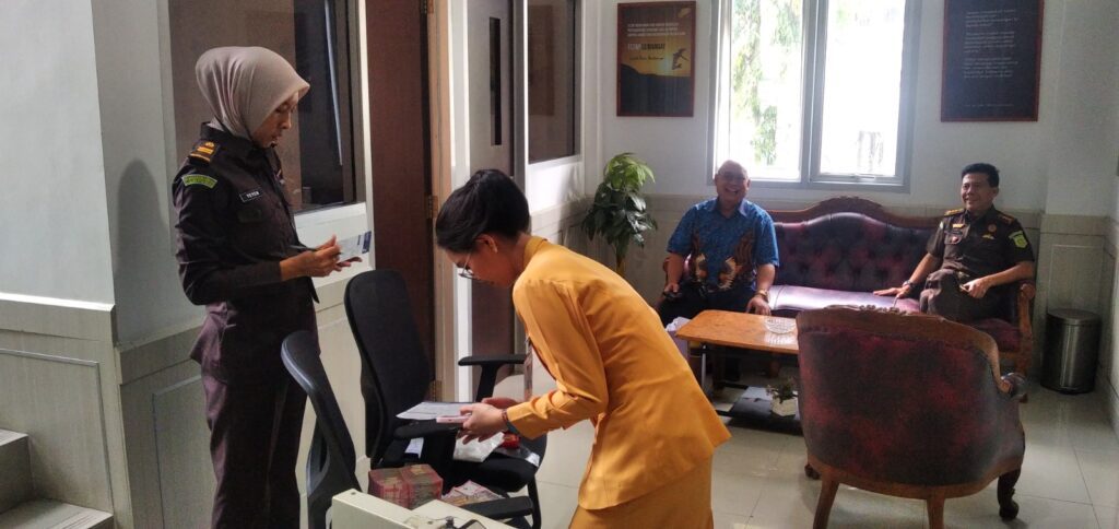 BANYUWULU.COM- Lampung – Kejaksaan Tinggi Lampung – Penyidik Tindak Pidana Khusus Kejati Lampung kembali menerima penyerahan uang titipan sebesar Rp. 375.356.769,- (tiga ratus tujuh puluh lima juta tiga ratus lima puluh enam ribu tujuh ratus enam puluh sembilan rupiah) yang diserahkan oleh tersangka AW Bin Y selaku Direktur PT. Citra Primadona Perkasa (Kontraktor Pelaksana) melalui Penasihat Hukum Tersangka Sdr. Sukarmin S.H., M.H., pada hari Senin tanggal 20 Januari 2025, dimana sebelumnya pada tanggal 16 Desember 2024 yang bersangkuan telah menyerahkan uang titipan sebesar Rp. 390.000.000,- (tiga ratus sembilan puluh juta rupiah), lalu pada tanggal 27 Desember 2024 sebesar Rp. 290.000.000,- (dua ratus sembilan puluh juta rupiah) dan pada tanggal 06 Januari 2025 sebesar Rp.320.000.000,- (tiga ratus dua puluh juta rupiah). Sehingga total uang titipan yang sudah diserahkan sebesar Rp1.375.356.769,00 (satu miliar tiga ratus tujuh puluh lima juta tiga ratus lima puluh enam ribu tujuh ratus enam puluh sembilan rupiah).