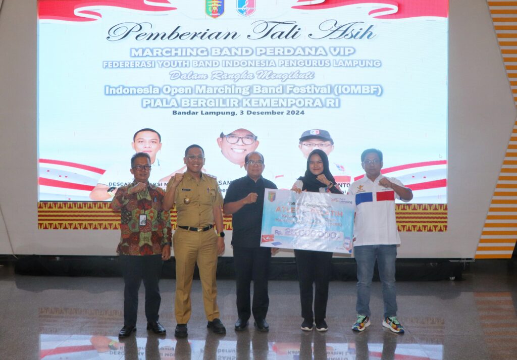 Pj. Gubernur Lampung Serahkan Penghargaan kepada Marching Band FYBI, Juara Umum IOMBF 2024