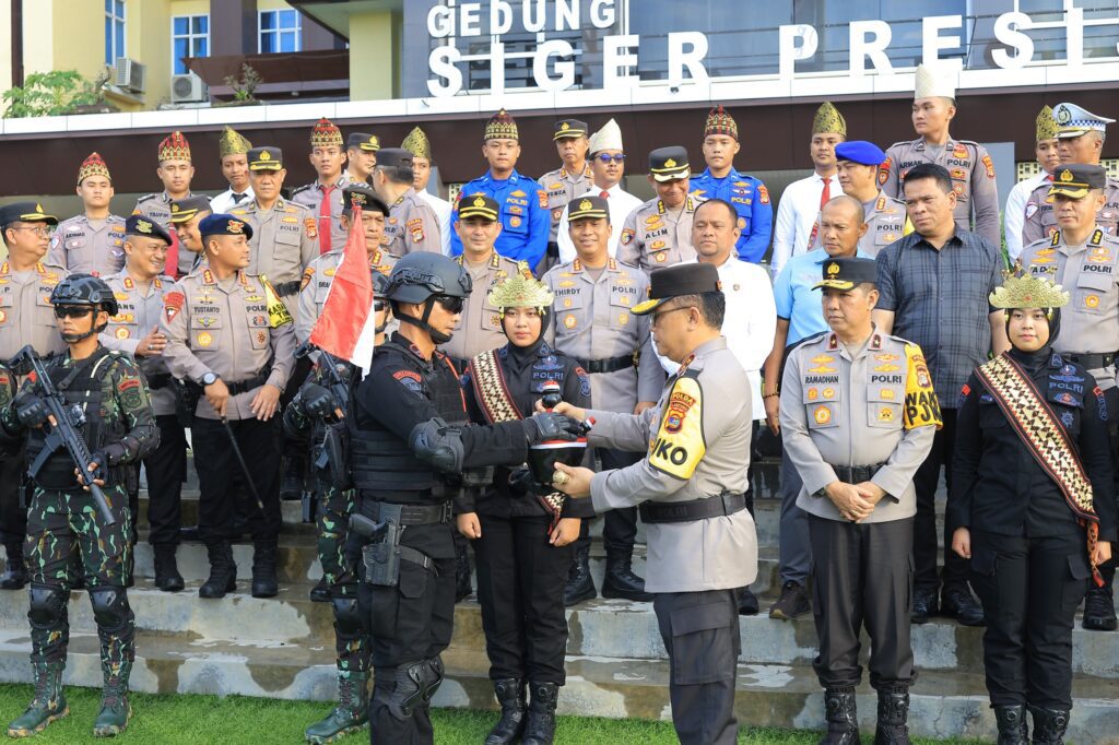BANYUWULU.COM- Bandar Lampung – Polda Lampung menggelar Upacara Penyerahan Air Suci dalam rangka peringatan ke-79 Hari Bhayangkara Tahun 2025. Kegiatan ini berlangsung di Lapangan Mini Soccer Polda Lampung dan dihadiri oleh Kapolda Lampung, Irjen Pol Helmy Santika, SH, SIK, M.Si,. beserta Pejabat Utama Polda Lampung. ( Senin , 17Juni 2025 )