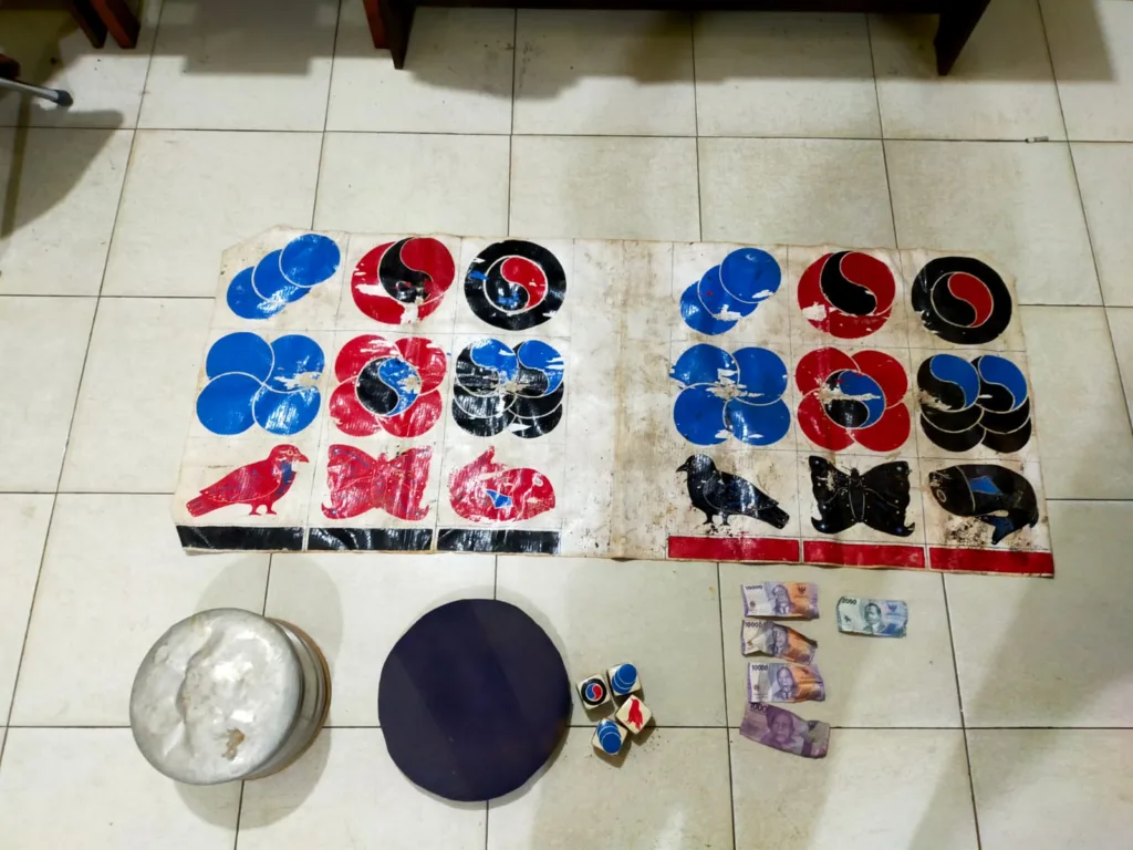 Setelah tiba di TKP, ternyata petugas kepolisian mendapati kebenaran adanya aktivitas permainan perjudian koprok dihalaman salah satu rumah warga masyarakat.