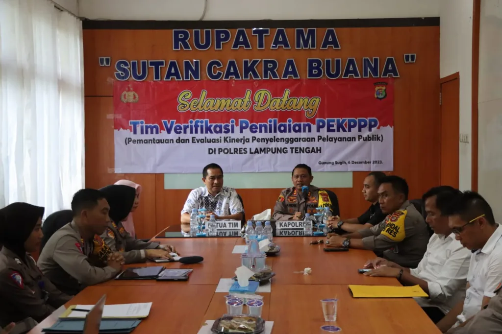 Kapolres Lampung Tengah menyampaikan bahwa kedatangan Tim Kemenpan RB RI ini dalam rangka melaksanakan pemantauan dan evaluasi kinerja penyelenggara pelayanan publik (PEKPPP) .