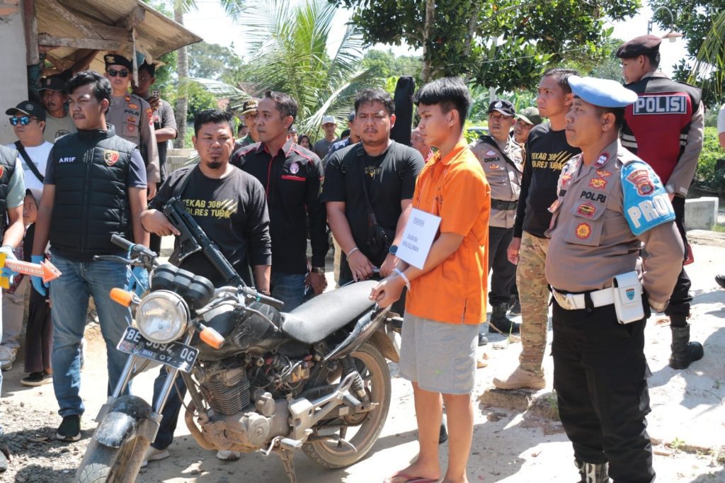 “Kemarin siang, kami menggelar rekonstruksi pembunuhan berencana terhadap korban Tya Septiana (26), honorer staff TU salah satu SMA oleh calon suaminya sendiri, Salman (18), yang berlangsung di 6 (enam) lokasi yang berada di Kampung Moris Jaya dan Kampung Tri Darma Wira Jaya,” ucap Kasat Reskrim, AKP Noviarif Kurniawan, S.Tr.K, SIK, MH, mewakili Kapolres Tulang Bawang, AKBP Yuliansyah, SIK, MH, Jum’at (18/07/2025).