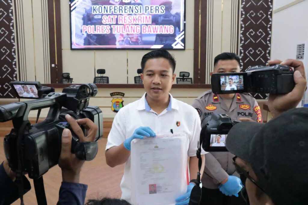 BANYUWULU.COM- Tulang Bawang – Satuan Reserse Kriminal (Satreskrim) Polres Tulang Bawang, Polda Lampung, mengungkap sindikat pemalsu Surat Keterangan Catatan Kepolisian (SKCK) yang dilakukan oleh 5 (lima) orang pelaku, terdiri dari satu orang laki-laki yang berprofesi wiraswasta, dan 4 (empat) orang perempuan yang berprofesi sebagai ibu rumah tangga (IRT).