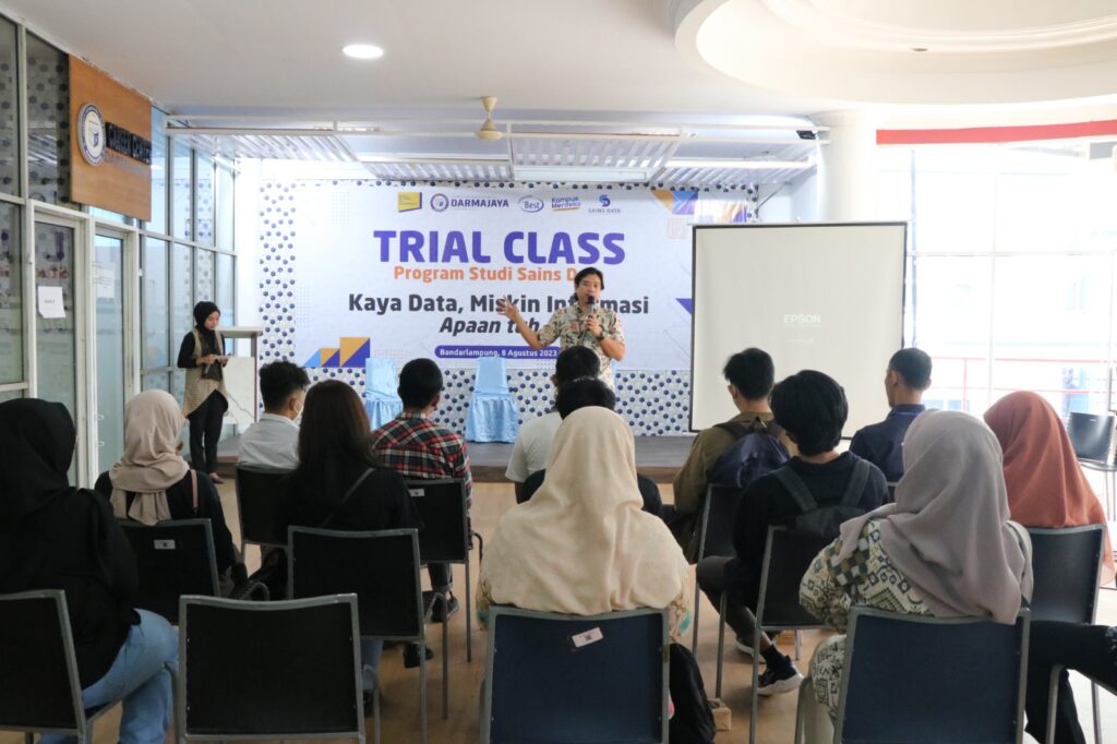 Ketua Prodi Sains Data Hendra Kurniawan mengatakan kegiatan Trial Class ini dalam rangka mengenalkan Prodi Sains Data kepada calon mahasiswa baru. “Sebagai Prodi baru juga Trial Class untuk mengenalkan mata kuliah yang akan dijumpai oleh calon mahasiswa baru Prodi Sains Data,” ungkap dia seperti mengutip dari https://darmajaya.ac.id.
