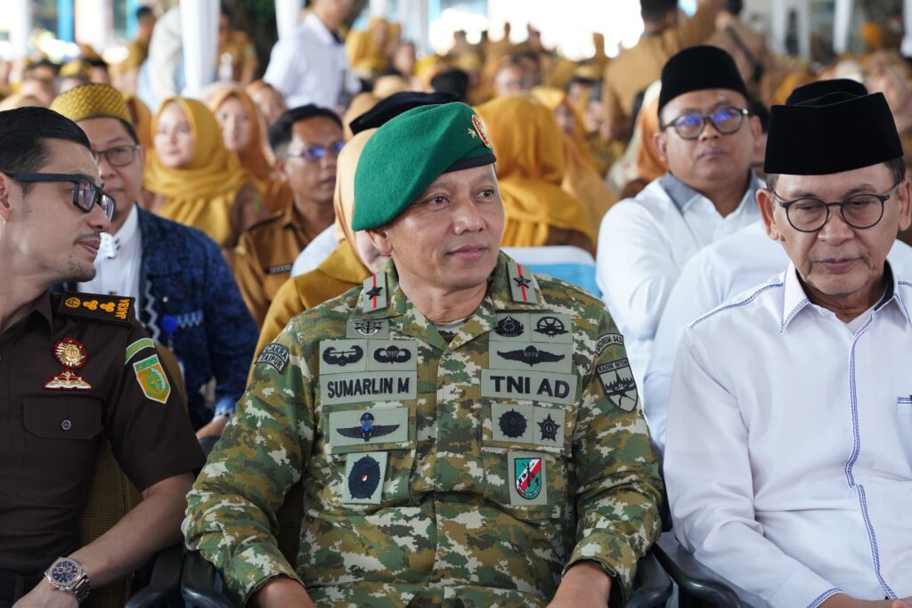BANYUWULU.COM- BANDAR LAMPUNG – Suasana penuh keberkahan menyelimuti Lapangan Kantor Gubernur Lampung, Senin (30/3/2026). Komandan Korem (Danrem) 043/Gatam, Brigjen TNI Sumarlin Marzuki, S.E., M.Han., hadir bersama keluarga besar Pemerintah Provinsi Lampung dalam agenda tahunan Halal Bihalal pasca-Idul Fitri 1447 H.