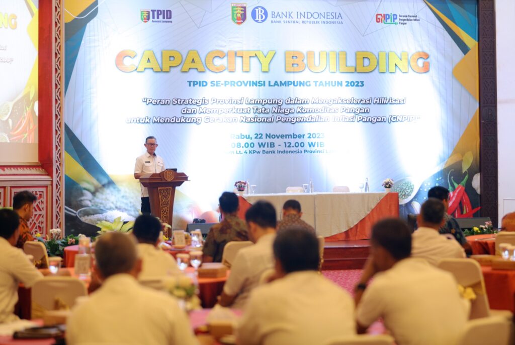 BANYUWULU.COM- BANDAR LAMPUNG —– Sektetaris Daerah Provinsi Lampung Fahrizal Darminto menghadiri acara Capacity Building Tim Pengendalian Inflasi Daerah (TPID) se-Provinsi Lampung Tahun 2023 di Kantor Perwakilan Bank Indonesia Provinsi Lampung, Rabu (22/11/2023).