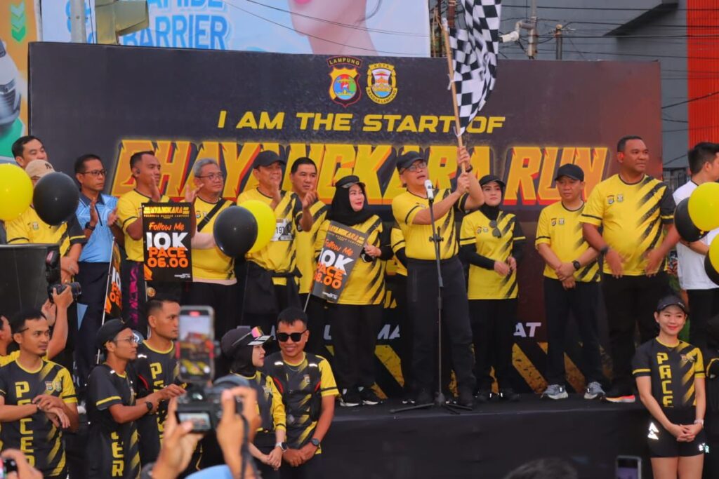 Ribuan peserta dari berbagai wilayah di Provinsi Lampung antusias mengikuti ajang lari ini, termasuk para Pejabat Utama (PJU) dan anggota Polda Lampung.