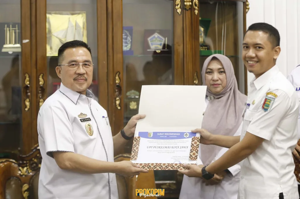 BANYUWULU.COM – Pesawaran – Sekretaris Daerah (Sekda) Kabupaten Pesawaran Wildan menyerahkan surat rekomendasi Badan Layanan Umum Daerah (BLUD) kepada 2 Puskesmas di Kabupaten Pesawaran.