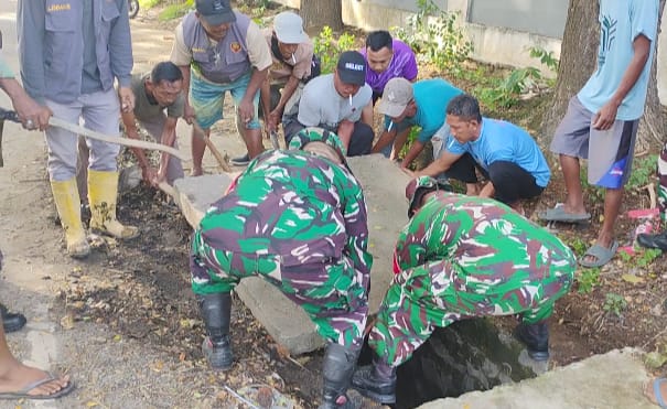 Peringati Hari Pahlawan Radin Inten ll , Babinsa Jagabaya lll Pimpin Gotong Royong Bersihkan Selokan