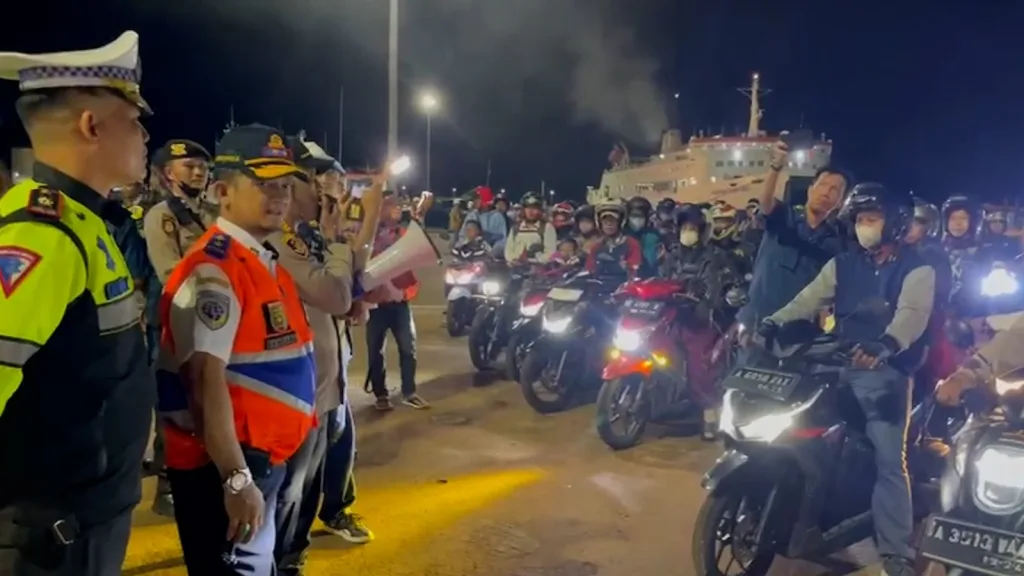 Puluhan pemudik sepeda motor ini tiba di Pelabuhan Panjang, pada Minggu, (07/04/2024) sekira jam 03.30 Wib dengan menggunakan KMP Panorama Nusantara.