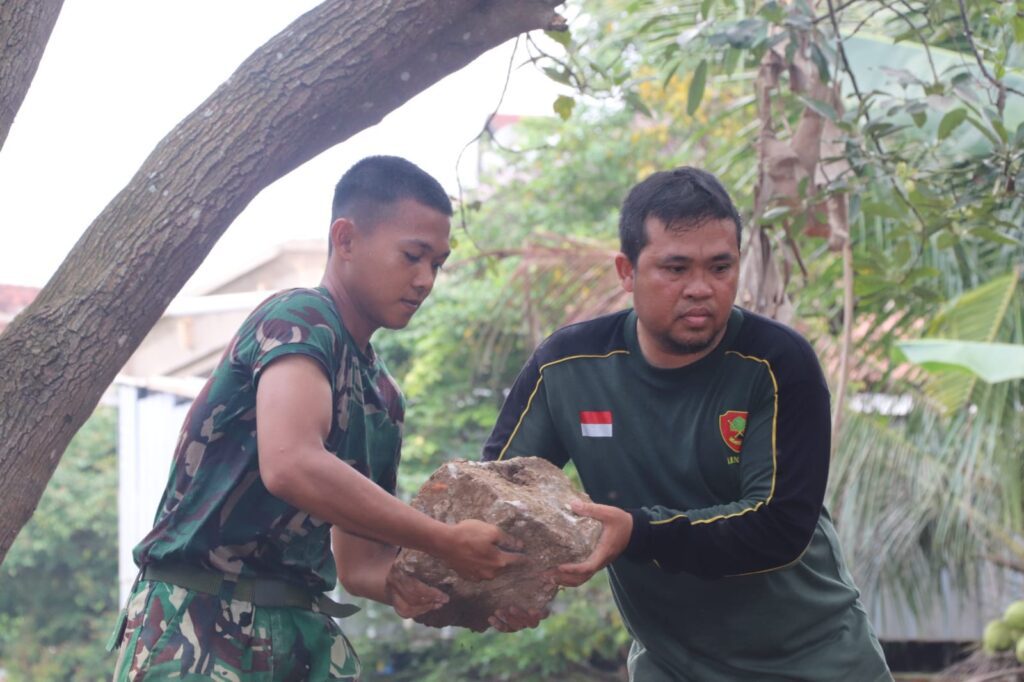 Tak ketinggalan, di Kecamatan Bumi Waras, Babinsa Kelurahan Garuntang, Pelda Sulindra dari Koramil 410-02/TBS, memonitor kegiatan pengangkutan bahan material menuju lokasi sasaran sekaligus pembuatan pondasi tembok penahan air yang roboh pasca banjir pada Selasa (14/4/2025) di Jalan Pandawa RT 06 LK 1.