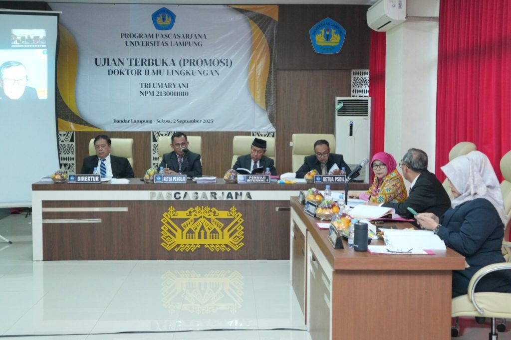 BANYUWULU.COM- LAMPUNG – Pascasarjana Universitas Lampung (Unila) kembali menorehkan prestasi akademik dengan lahirnya doktor baru. Tri Umaryani secara resmi dikukuhkan sebagai doktor setelah berhasil mempertahankan disertasi dalam Sidang terbuka promosi doktor yang digelar pada Selasa, 2 September 2025, di Aula Pascasarjana Unila.