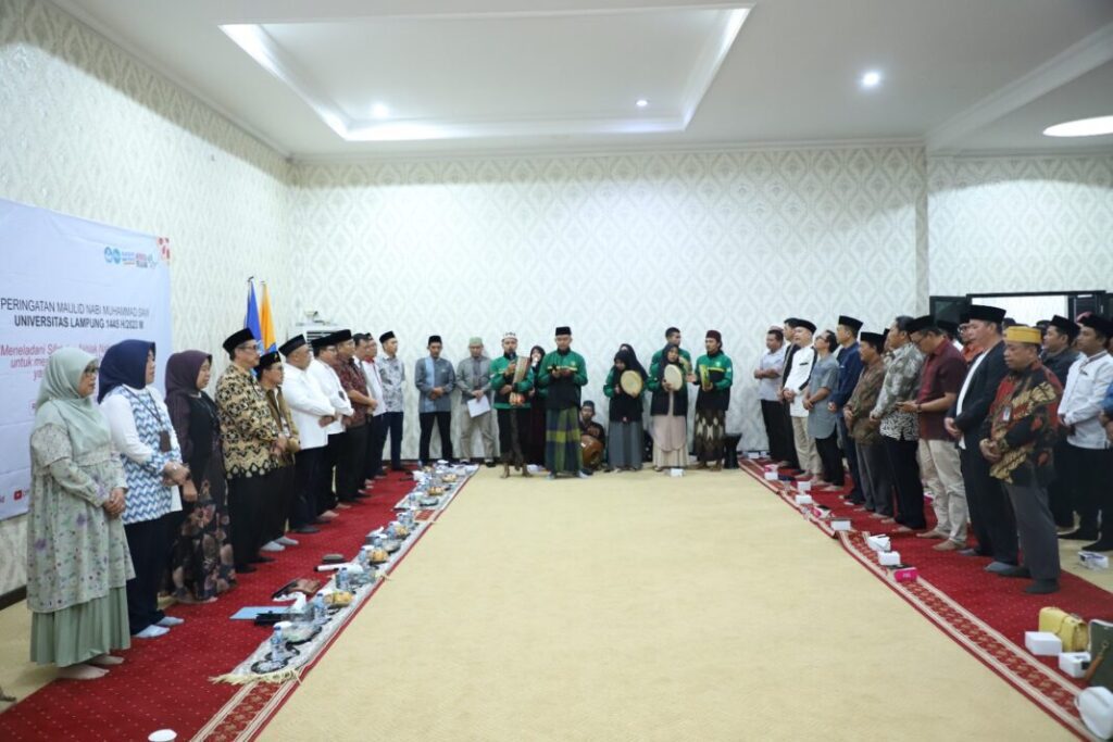 Banyuwulu.com – Bandar Lampung – Keluarga Besar Universitas Lampung (Unila) menggelar peringatan Maulid Nabi Muhammad saw tahun 1445 H/2023 M, pada Selasa pagi, 3 Oktober 2023, di ruang pelantikan lantai empat gedung rektorat kampus setempat.