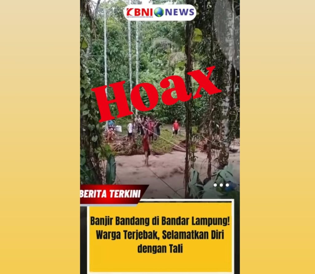Dalam unggahan video itu, disertai narasi yang mengklaim kejadian banjir di kecamatan teluk betung timur, kota Bandar Lampung, 27 Februari 2025.Dari penelusuran redaksi, video yang diklaim banjir bandang yang melanda way keteguhan, kecamatan teluk betung timur kota Bandar lampung itu Hoax. Video tersebut bukan di kota Bandar lampung Lampung, tetapi di kampung pancor kabupaten Pesawaran.