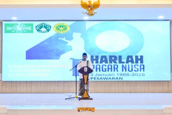 BANYUWULU.COM- Pesawaran, 6 Januari 2026 – Perguruan Pencak Silat Nahdatul Ulama Pagar Nusa memperingati Hari Lahir (Harlah) ke-40 tahun dengan mengusung tema “Mengakar dalam Kebijaksanaan, Menyapa Luka Zaman, Merawat Peradaban”. Kegiatan yang menandai perjalanan Pagar Nusa sejak 3 Januari 1986 hingga 2026 ini digelar di Gedung Serba Guna (GSG) Pemkab Pesawaran, Senin (5/1/2026).