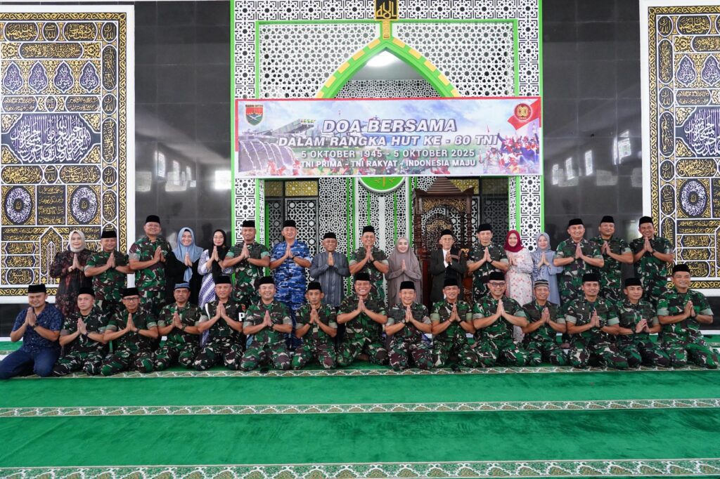 BANYUWULU.COM-Lampung – Dalam rangka memperingati Hari Ulang Tahun (HUT) ke-80 Tentara Nasional Indonesia (TNI), Komando Daerah Militer XXI/Radin Inten (Kodam XXI/RI) menggelar doa bersama di Masjid Al-Ikhlas Makodam XXI/RI, Jl. Teuku Umar, Penengahan, Bandar Lampung, Sabtu (4/10/2025).